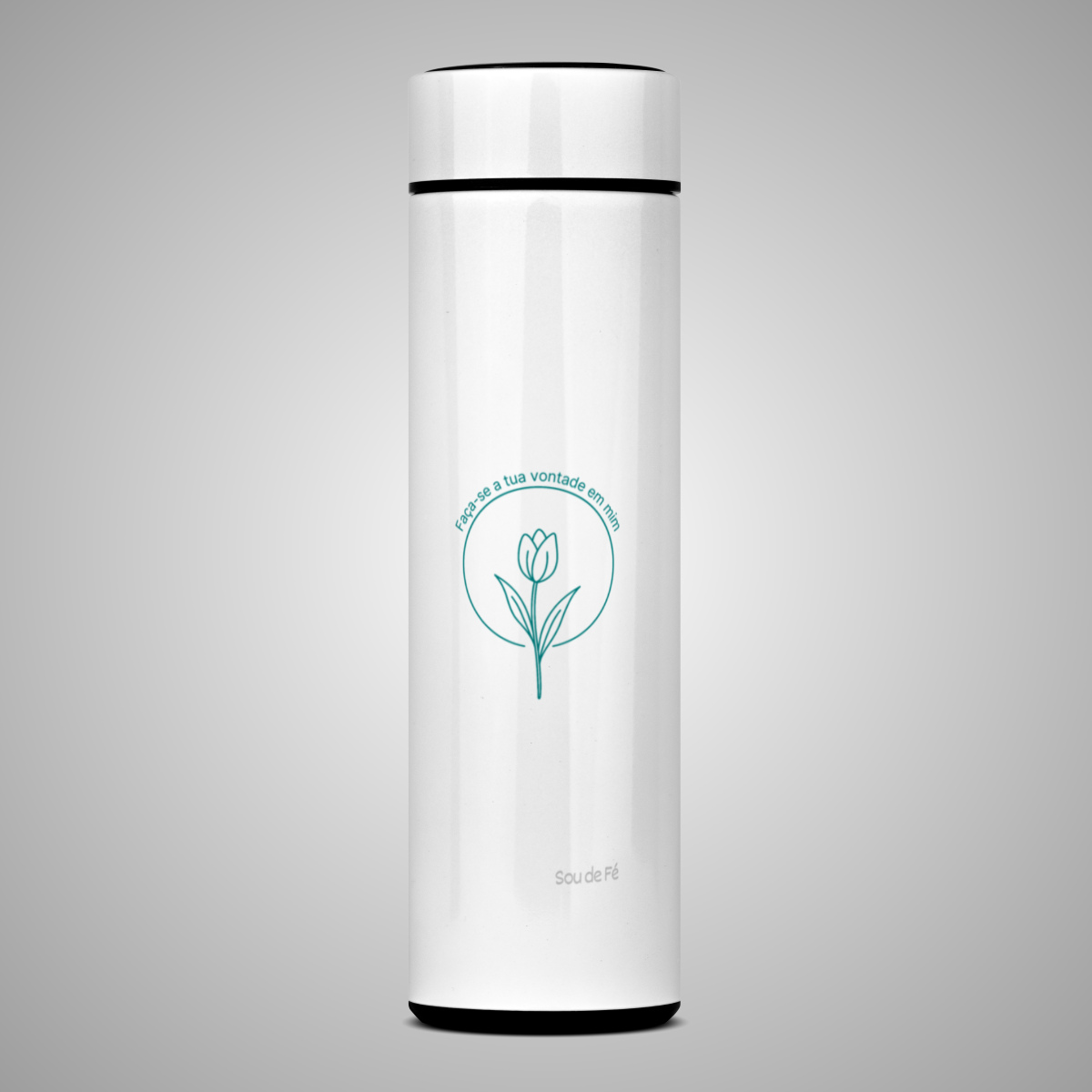 Beleza, propósito e fé em cada detalhe. A garrafa Faça-se a Tua Vontade em Mim traz o símbolo do lírio — representação de pureza, entrega e confiança — em um design minimalista e inspirador. Ideal para acompanhar sua rotina com leveza e significado.
