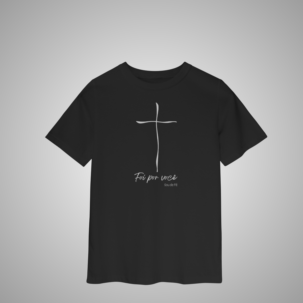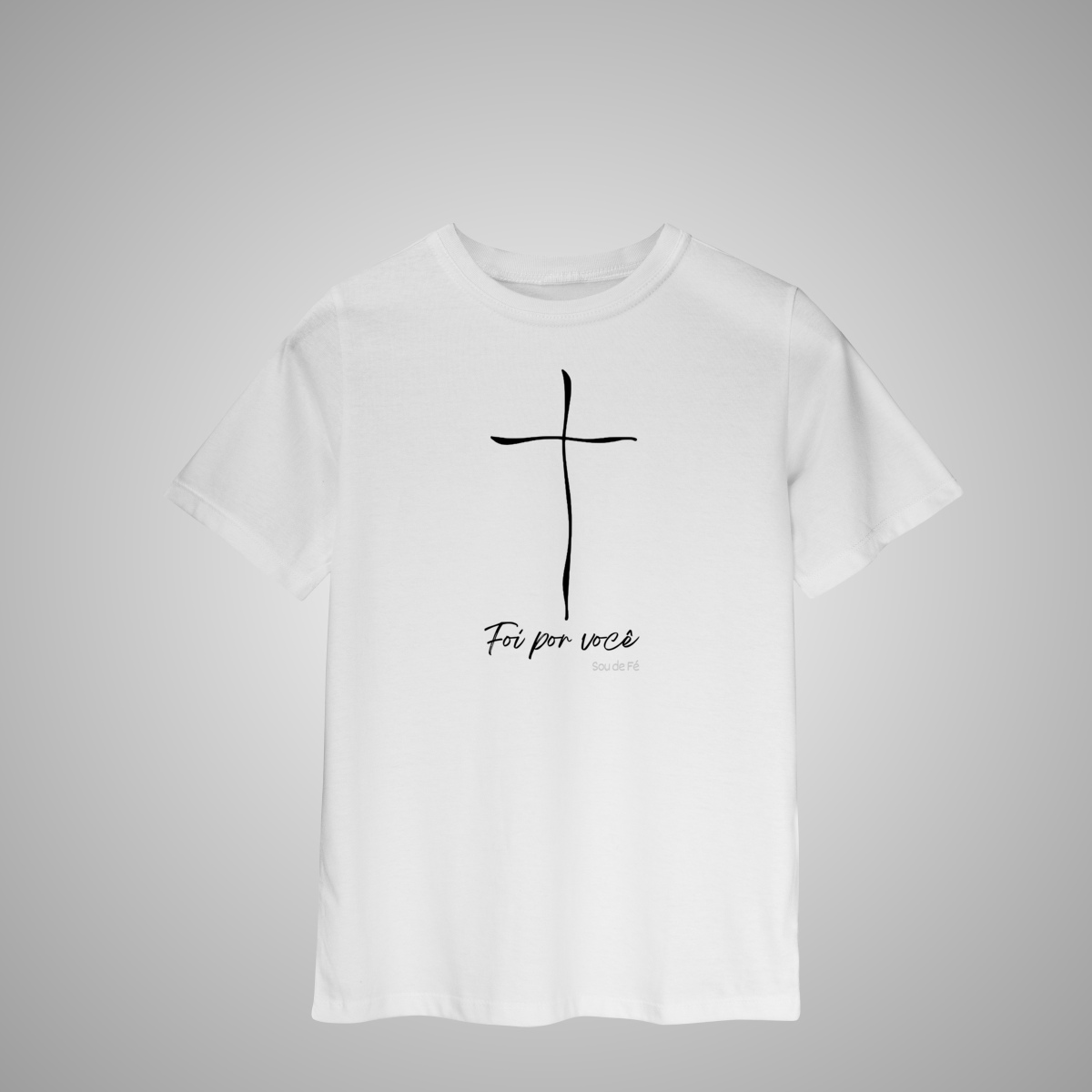 Uma mensagem de amor e fé para acompanhar o crescimento. A T-Shirt infantil Foi por Você traz a cruz em traço delicado e minimalista — símbolo do amor que ensina, protege e inspira desde cedo.
