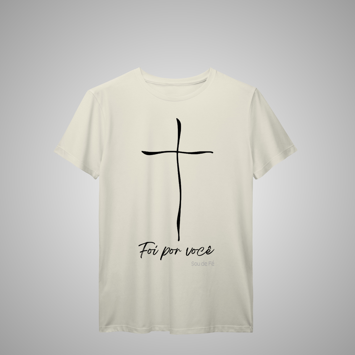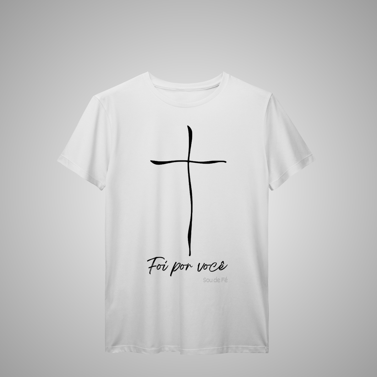 Simplicidade que fala alto. A T-Shirt masculina Foi por Você traz a cruz em traço leve e minimalista — símbolo do amor e da entrega que inspiram a fé cristã. Uma peça atemporal que une espiritualidade, estilo e propósito.