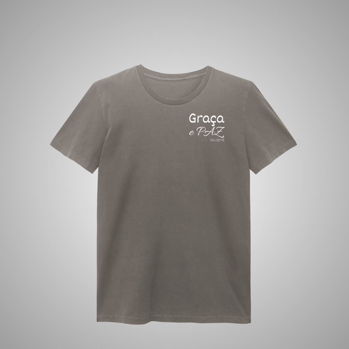 Com uma arte delicada e cheia de propósito, esta camiseta traz a saudação usada por São Paulo em suas cartas: “Graça e Paz” — expressão que une fé, leveza e a esperança cristã.
