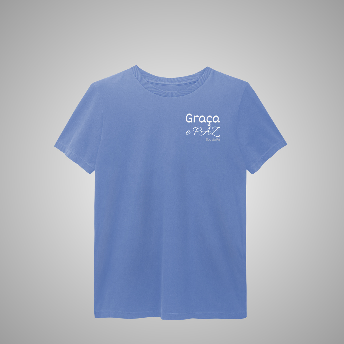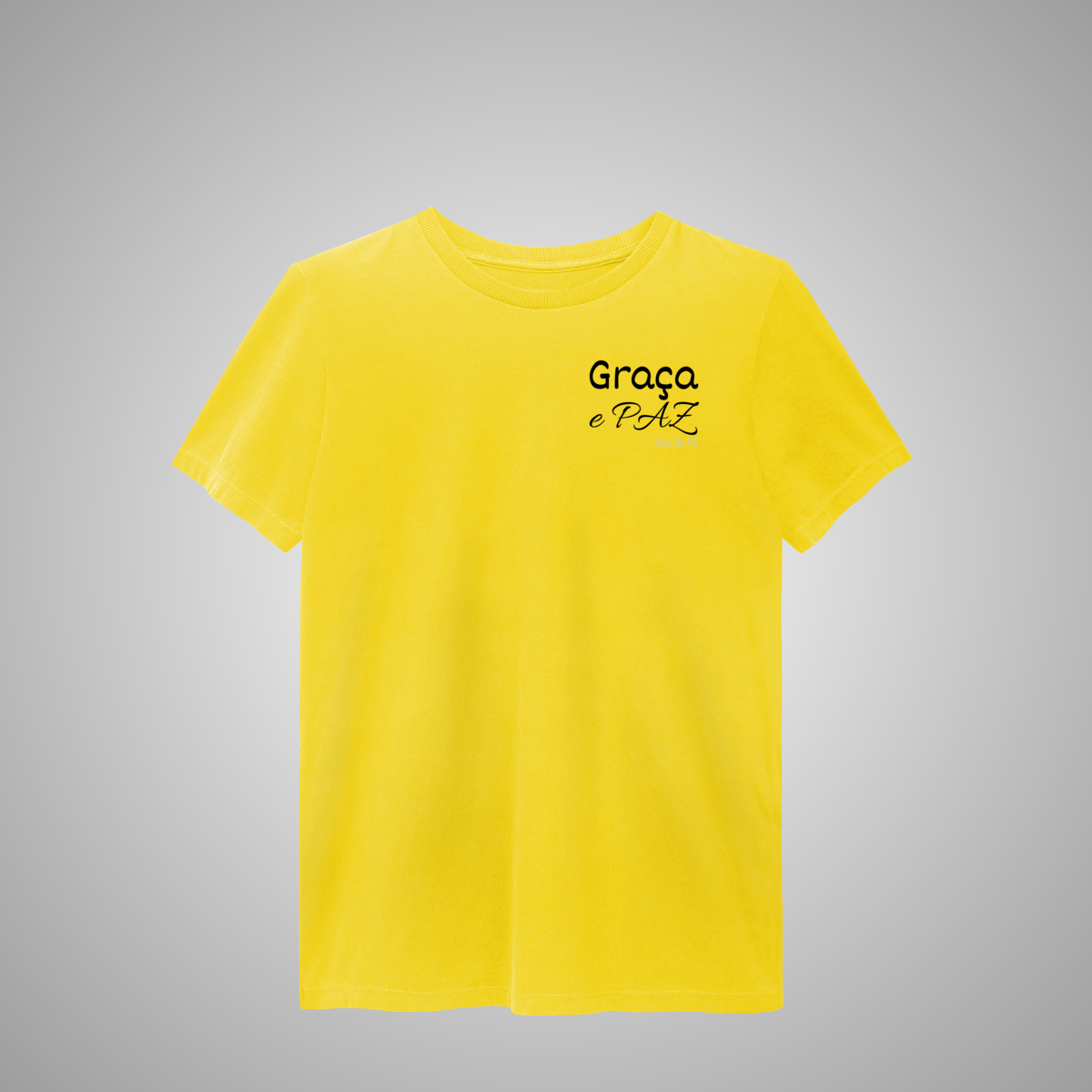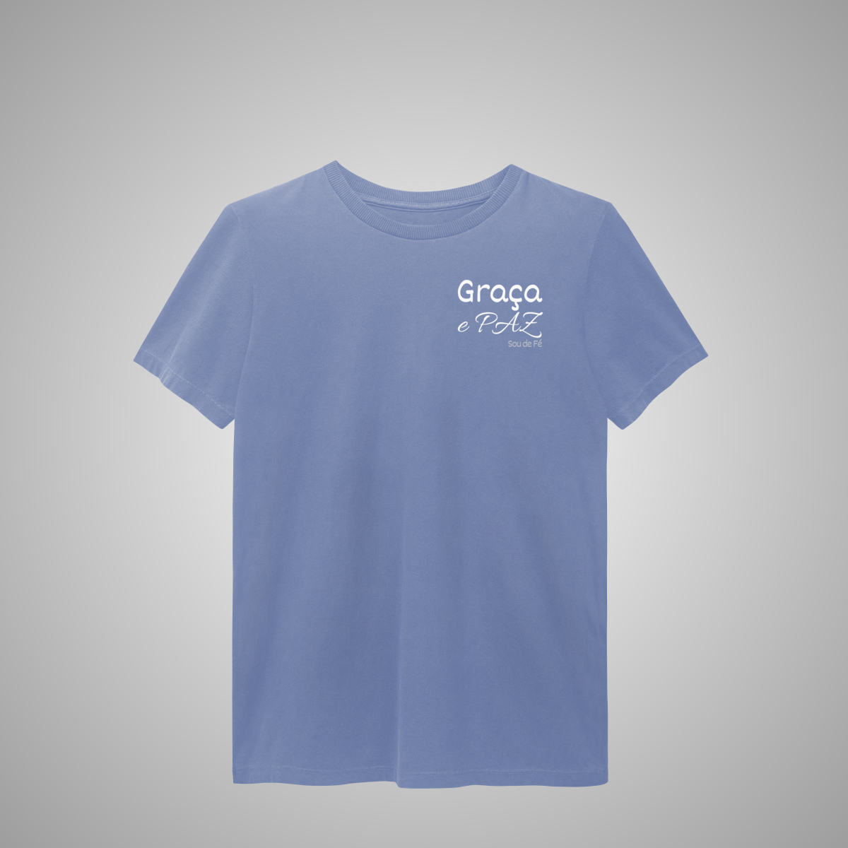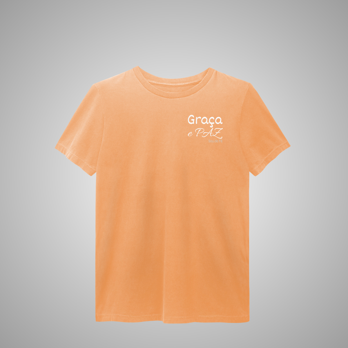 Com visual discreto e cheio de significado, esta camiseta carrega a saudação presente nas cartas de São Paulo: “Graça e Paz” — uma mensagem que atravessa os séculos levando esperança, reconciliação e fé.