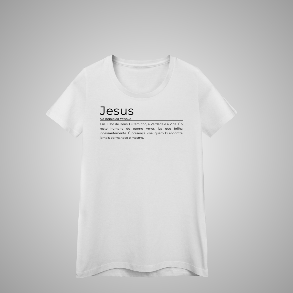 Delicada e profunda, a T-Shirt feminina Jesus expressa o amor que transforma e o nome que é essência da fé. Um design minimalista e cheio de significado, feito para quem carrega propósito, leveza e devoção em cada detalhe.