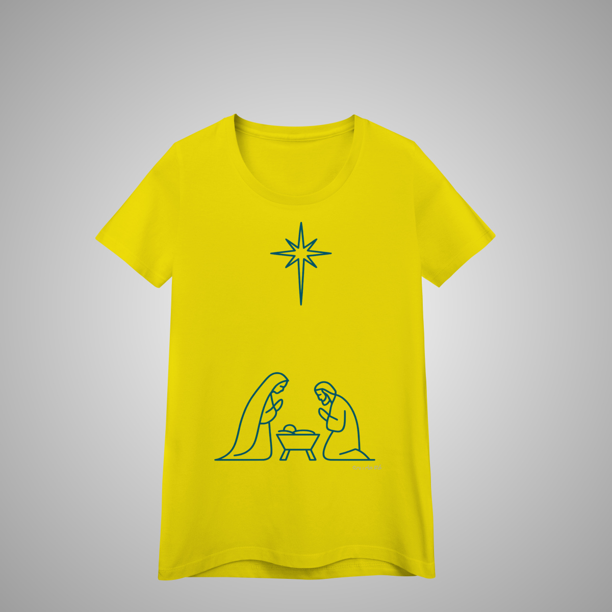 Leveza, fé e amor em cada detalhe. A T-Shirt feminina Manjedoura, da Coleção de Natal, retrata o nascimento de Jesus sob a Estrela de Belém — símbolo de esperança e luz divina. Um design delicado e minimalista que celebra o verdadeiro sentido do Natal com beleza e propósito.