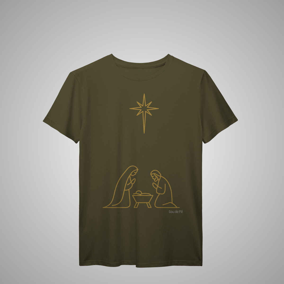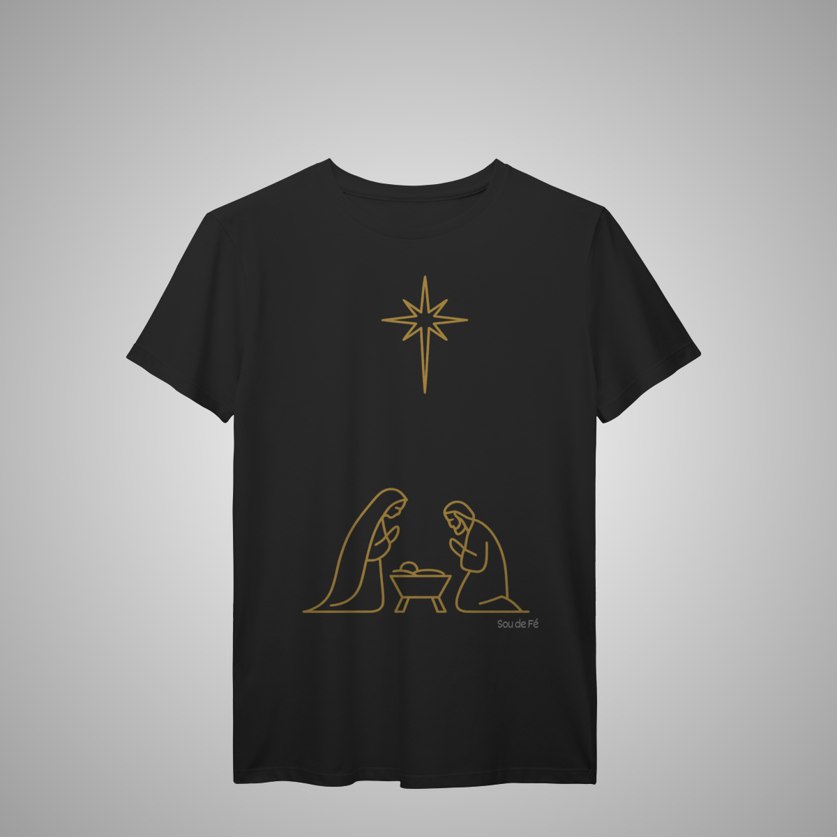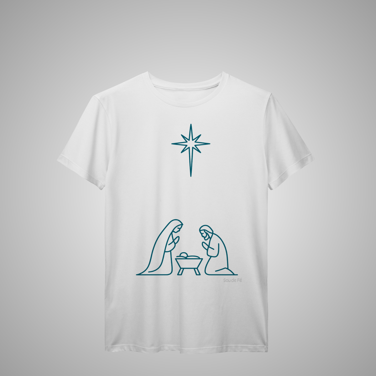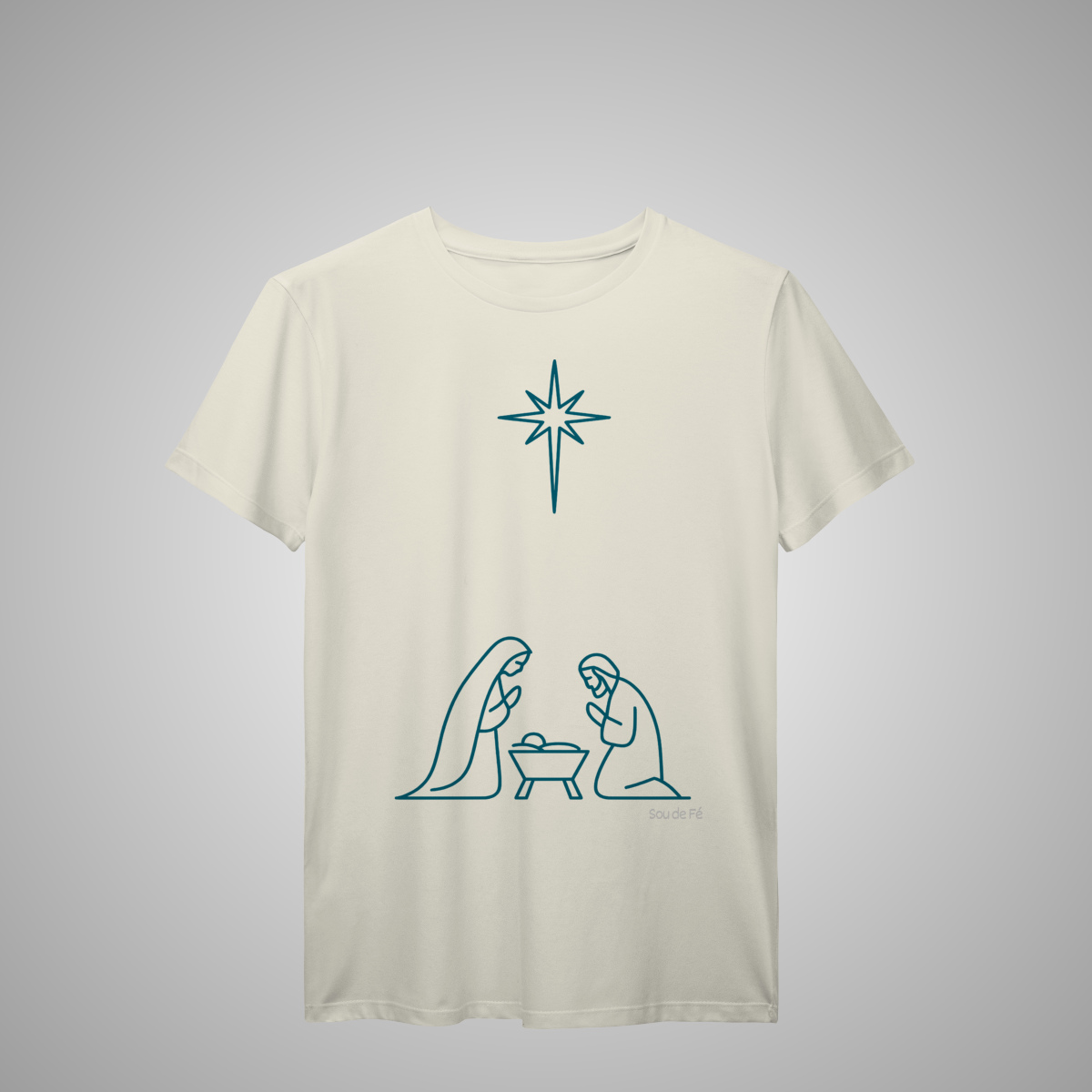 Fé e propósito em forma de arte. A T-Shirt masculina Manjedoura, da Coleção de Natal, traz a cena do nascimento de Jesus sob a Estrela de Belém — símbolo de luz, amor e esperança. Um design minimalista e atemporal que expressa o verdadeiro significado do Natal com simplicidade e estilo.