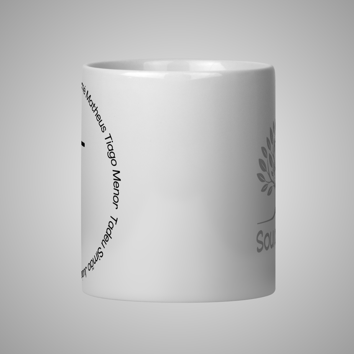 Com a cruz central cercada pelos nomes dos Doze Apóstolos, esta caneca traduz a presença e o propósito de quem segue os passos de Cristo.
