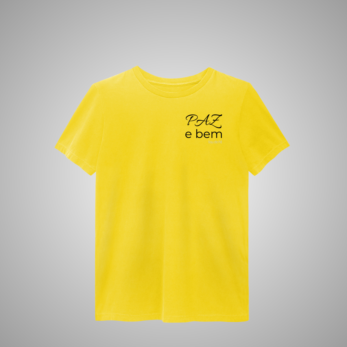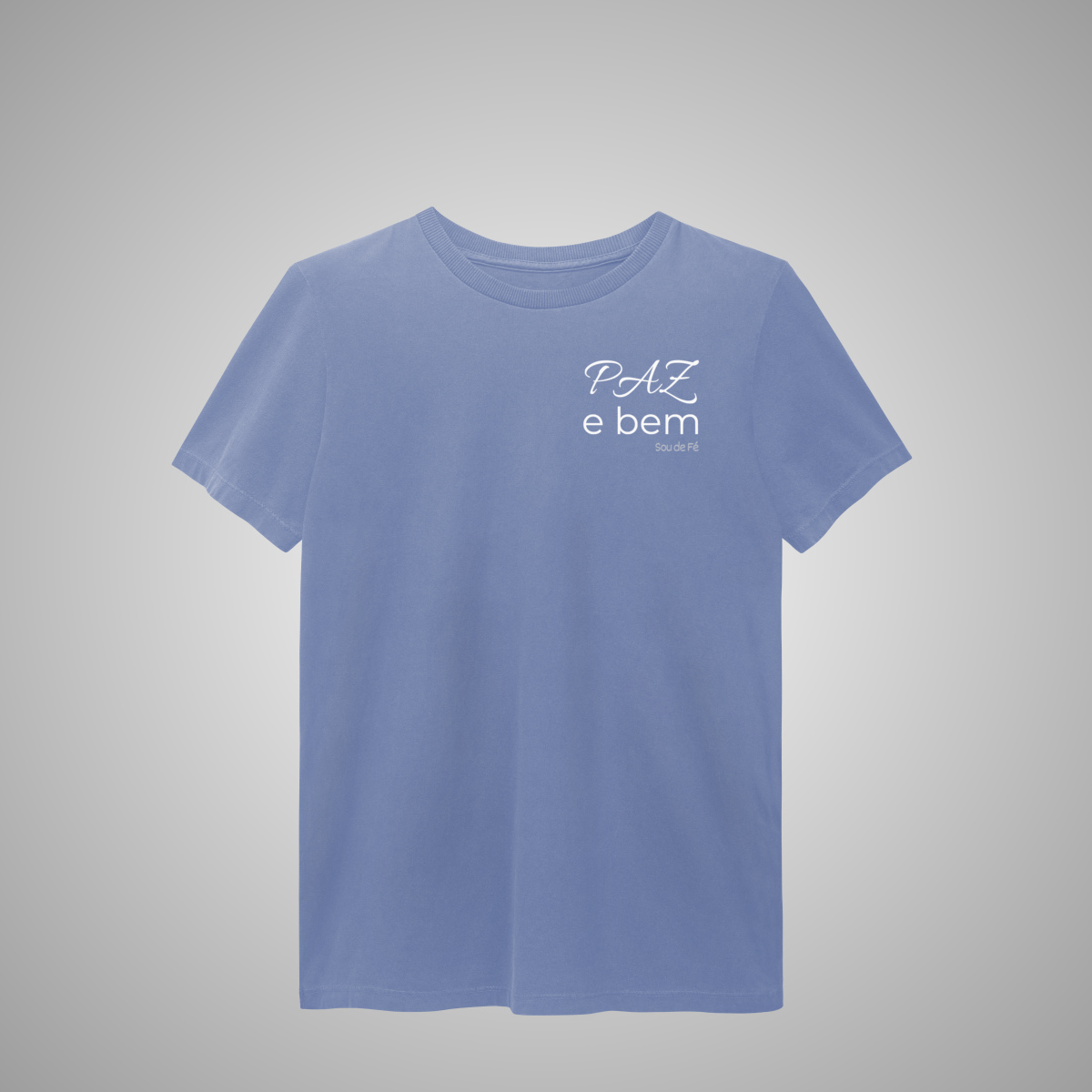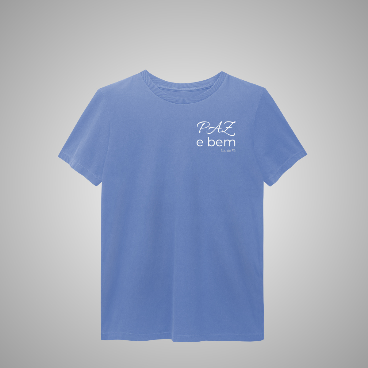 Com design limpo e tipografia minimalista, esta camiseta traz a tradicional saudação franciscana “Paz e Bem”, aplicada com sutileza no lado esquerdo do peito.