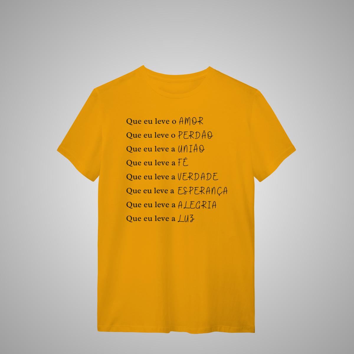 Inspirada na oração de São Francisco de Assis, essa estampa é um convite diário à paz, ao amor e à luz. Cada linha expressa um propósito, com destaque para palavras que transformam: AMOR, PERDÃO, UNIÃO, FÉ, VERDADE, ESPERANÇA, ALEGRIA, LUZ.