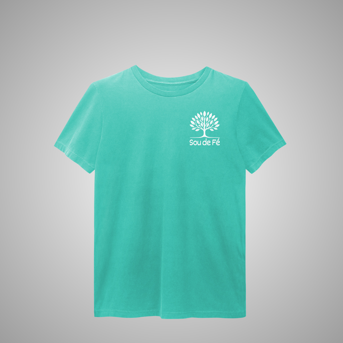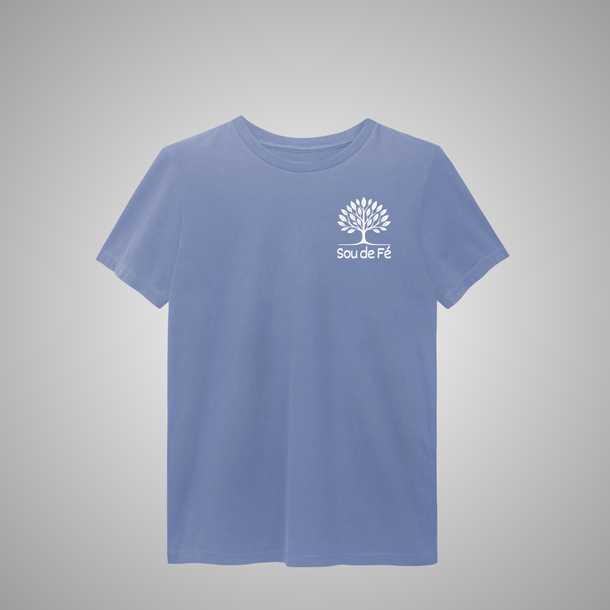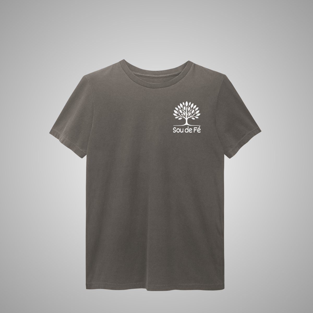 Com a árvore da vida da Sou de Fé no peito, esta camiseta combina propósito e autenticidade em um visual leve e atemporal.