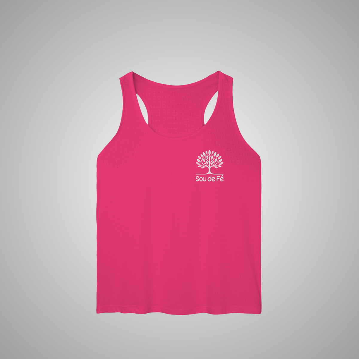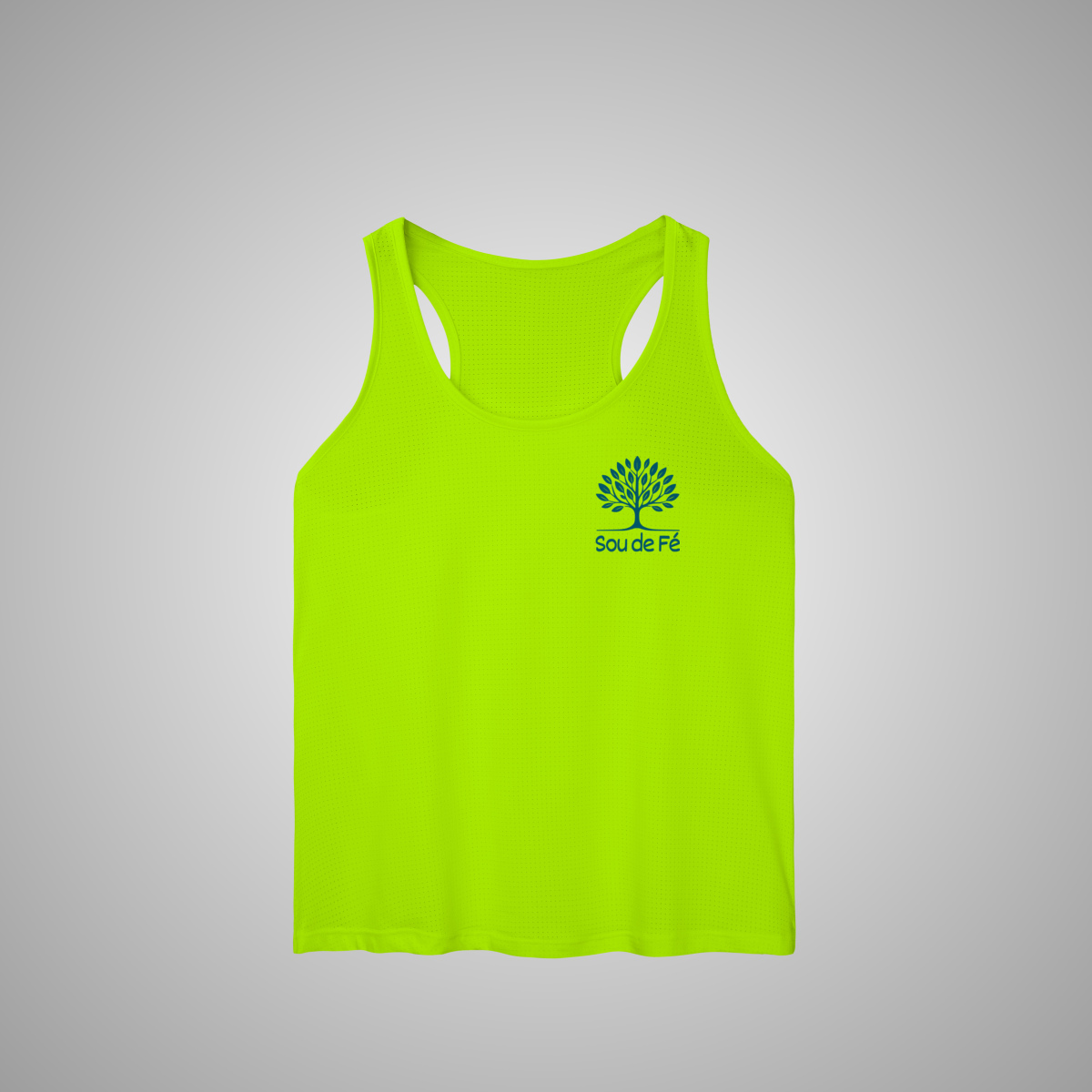 Com a árvore da vida da Sou de Fé no peito, esta regata foi pensada para quem busca liberdade de movimento sem abrir mão do estilo e da fé.