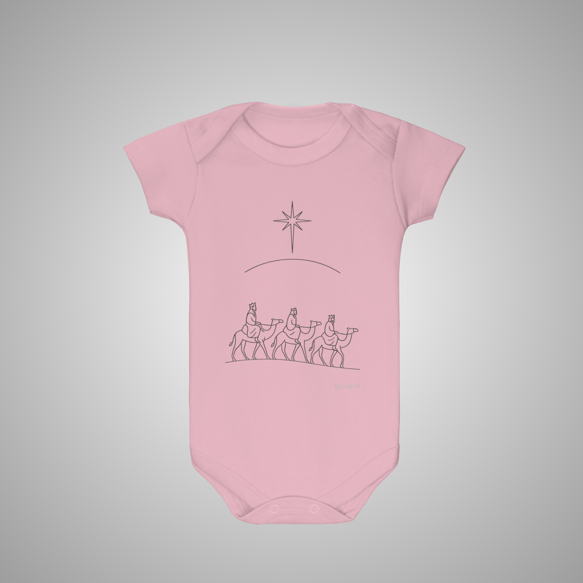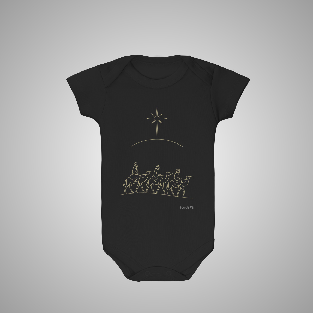 Luz, amor e fé desde o berço. O body baby Três Reis Magos, da Coleção de Natal, traz a cena dos Reis guiados pela Estrela de Belém — símbolo de esperança e adoração. Um design delicado e cheio de significado para celebrar o nascimento de Jesus com os pequenos.