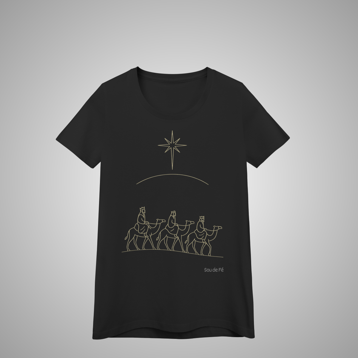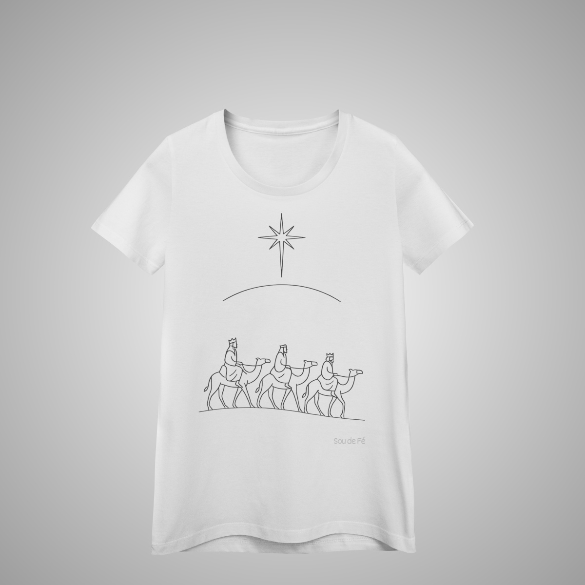 Luz, fé e propósito em cada detalhe. A T-Shirt feminina Três Reis Magos, da Coleção de Natal, representa a jornada guiada pela Estrela de Belém — símbolo de esperança e adoração. Um design delicado e minimalista que celebra o nascimento de Jesus com estilo e significado.